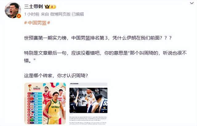 世预赛第一期实力榜,中国男篮排名第3,凭什么伊朗在我们前面?特别是文章最后一句,应该没看错吧,你的意思是“那个叫周琦的,听说也很不错。”这是哪个专家,你才认识周琦?
