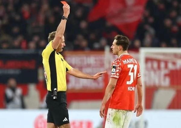 - 美因茨后卫科尔德甲生涯第9次染红,成德甲历史染红最多球员